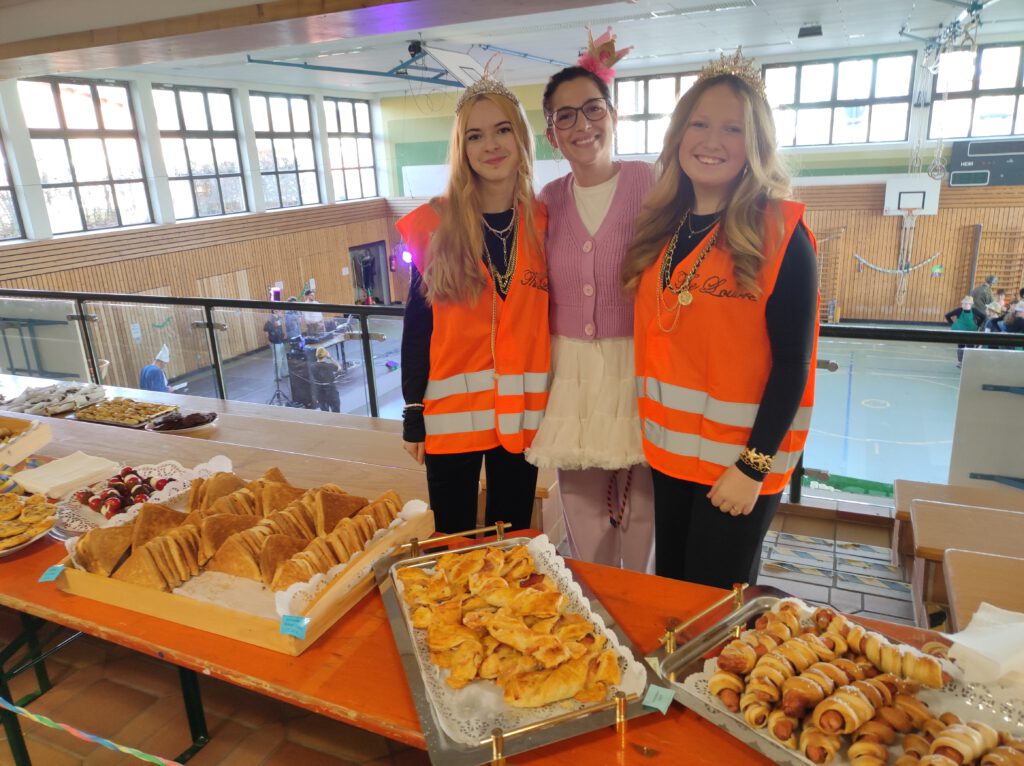 Am 29. November 2024 gab es wieder den beliebten Weihnachtsbasar für die ganze Schulfamilie. Schon den ganzen Vormittag herrschte große Vorfreude im Schulhaus. Die zahlreichen Besucher wurden mit eingeübten Liedern, Gedichten und Musikstücken in eine adventliche Stimmung versetzt. An den liebevoll dekorierten Ständen konnten die Besucher handgefertigte Geschenke wie Seifen oder Kerzen erwerben, die von den Schülern in den Wochen zuvor mit ihren Lehrkräften angefertigt worden waren. Auch gab es eine Tombola, die viele attraktive Preise bereithielt. Eine Fotobox mit zahlreichen weihnachtlichen Verkleidungsmöglichkeiten bereitete den Schülerinnen und Schülern viel Freude. Besonders beliebt war wieder einmal der Bosnagrill, den die 9a betreute, aber auch die frischen Waffeln der 7a oder das Kuchenbüfett des Elternbeirats samt heißer Getränke fand großen Anklang.